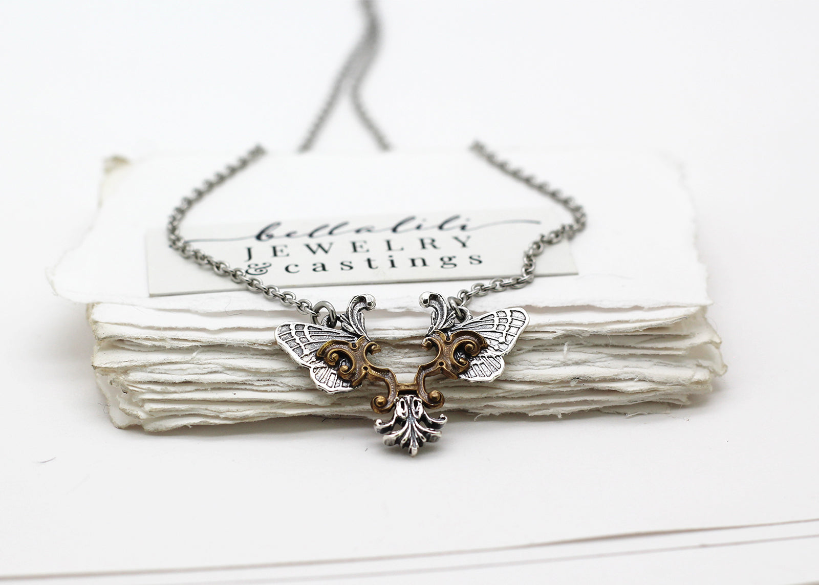 One of a kind, Antique French Brass & Sterling Butterfly Necklace