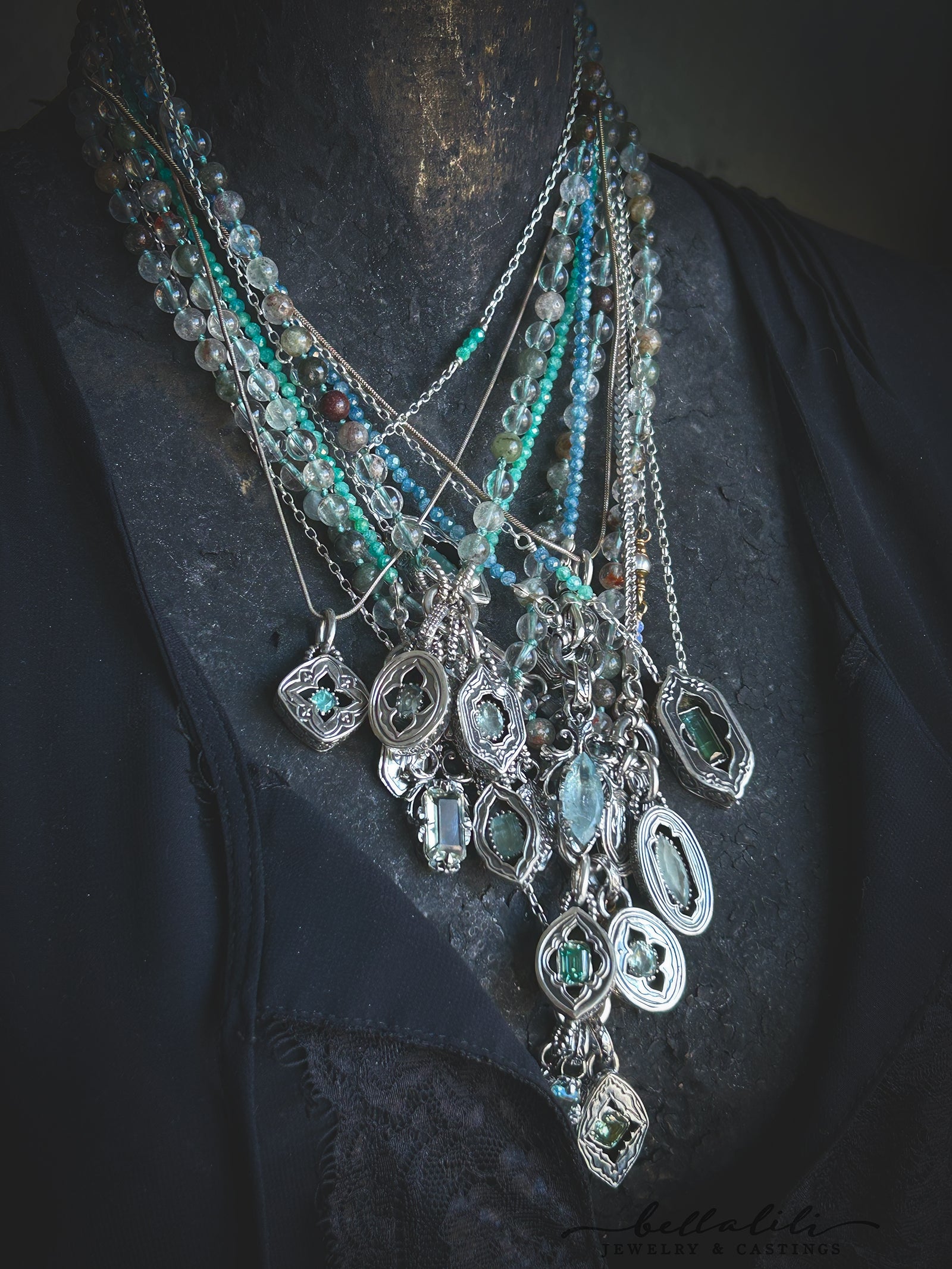 Avélys, Mini Shadowbox No8 aquamarine sterling silver pendant
