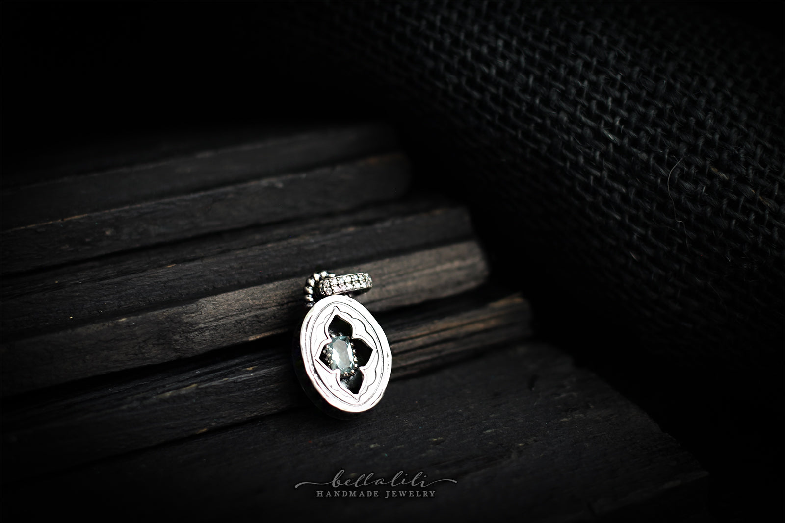 Avélys, Mini Shadowbox No9 aquamarine sterling silver pendant